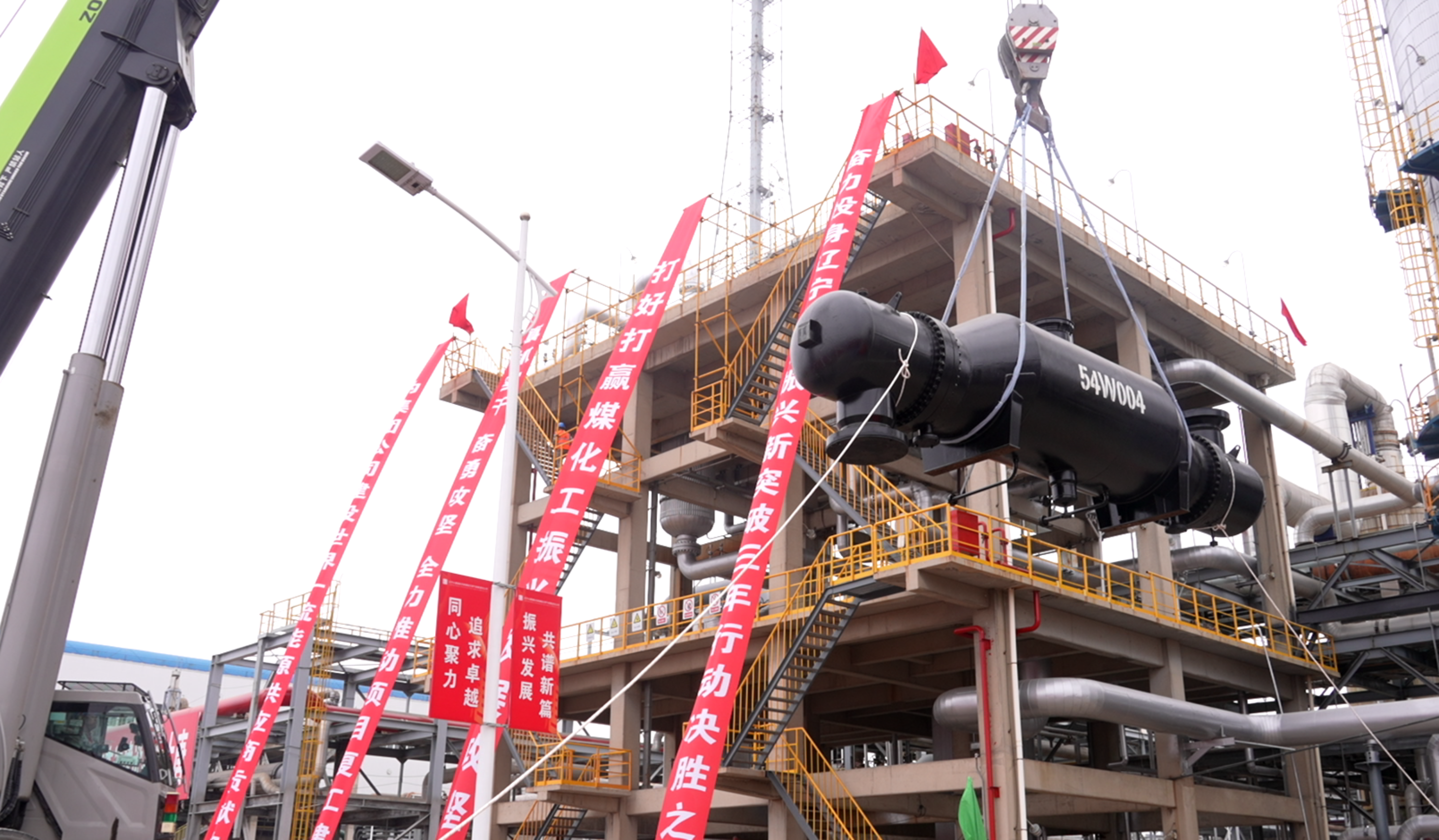 本网讯 10月15日上午,在中国大唐集团有限公司阜新煤制天然气项目复工建设动员会现场,随着最后一项大型装备吊装作业顺利完成,项目进入全面复工建设阶段。