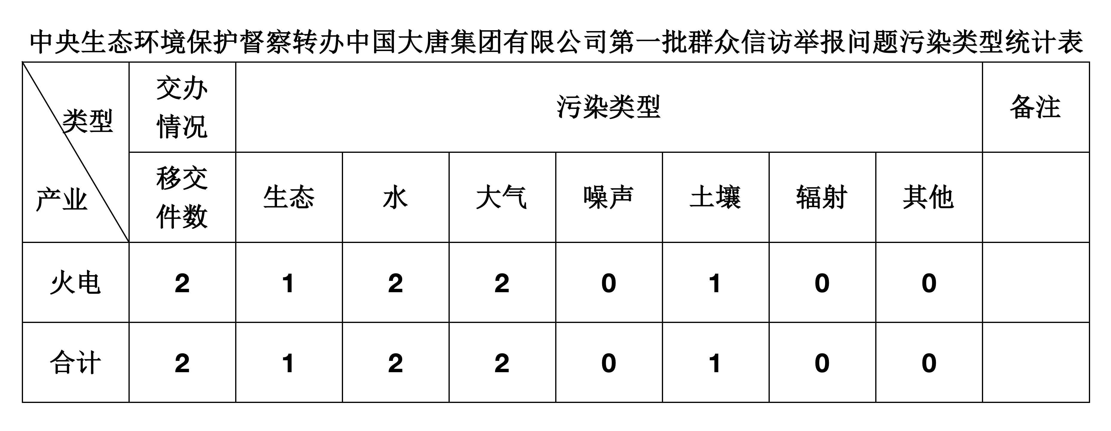 2025年5月30日,中央第七生态环境保护督察组向中国大唐集团有限公司移交第一批群众信访举报件,共计2件,均为来电举报件,涉及生态问题1个、水问题2个、大气问题2个、土壤问题1个。所有举报件办理工作已第一时间进入调查核实办理程序,办理情况将按照相关要求反馈督察组,并及时向社会公开。