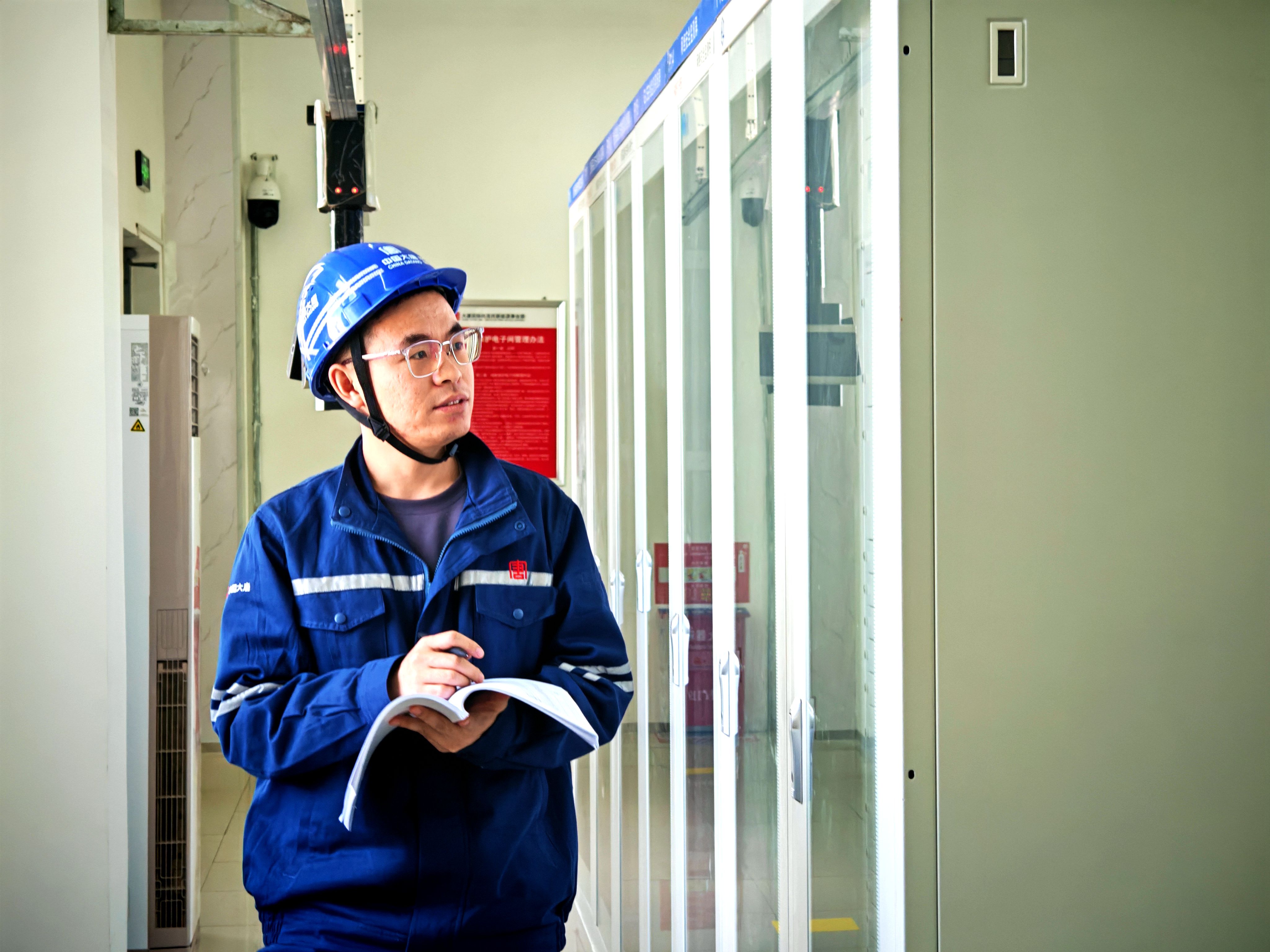 初识风电,谢磊便深知这是一份精细活儿。每一台风机,都是由成千上万个零部件组成的“庞然大物”,而运维工作是要在百米高的机舱里、在轰鸣的设备旁,精准排查隐患、高效解决故障。2022年开始风机检修工作后,他白天跟着厂家人员调试风机;晚上回去研究图纸,笔记本上记满了问题和关键点;次日带着问题再去验证。他凭借这种“笨办法”迅速成长。从面对高耸塔筒与复杂设备的局促紧张,到如今站在机舱内,他能循着数据波动精准定位故障。在一次次巡检与调试中,把不安酿成底气,他的技术在日积月累中稳步提升。