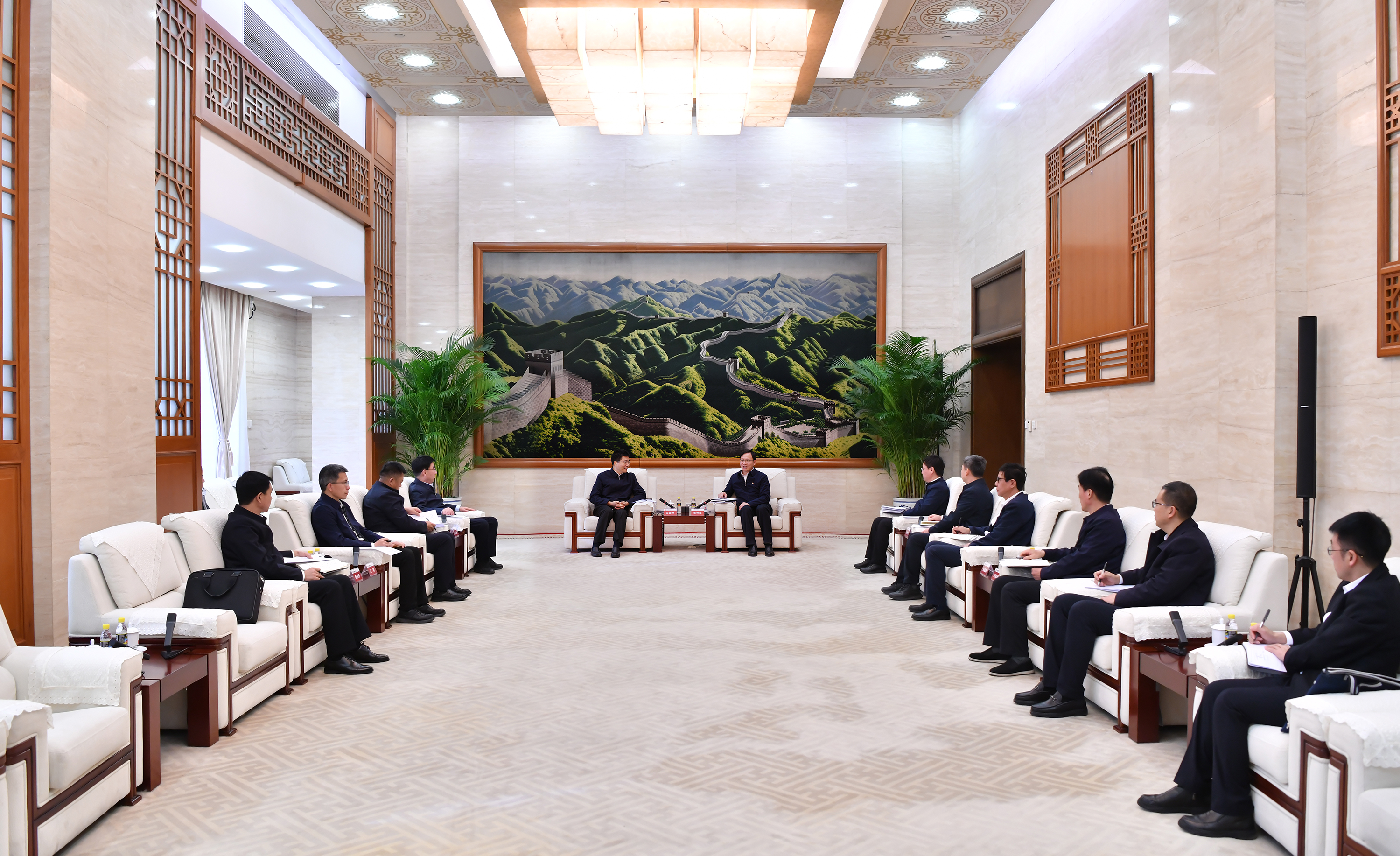 本网讯 12月10日,中国大唐集团有限公司董事、总经理、党组副书记张传江在总部与宁夏回族自治区党委常委、副主席买彦州举行会谈,双方就深化央地合作进行友好沟通交流。