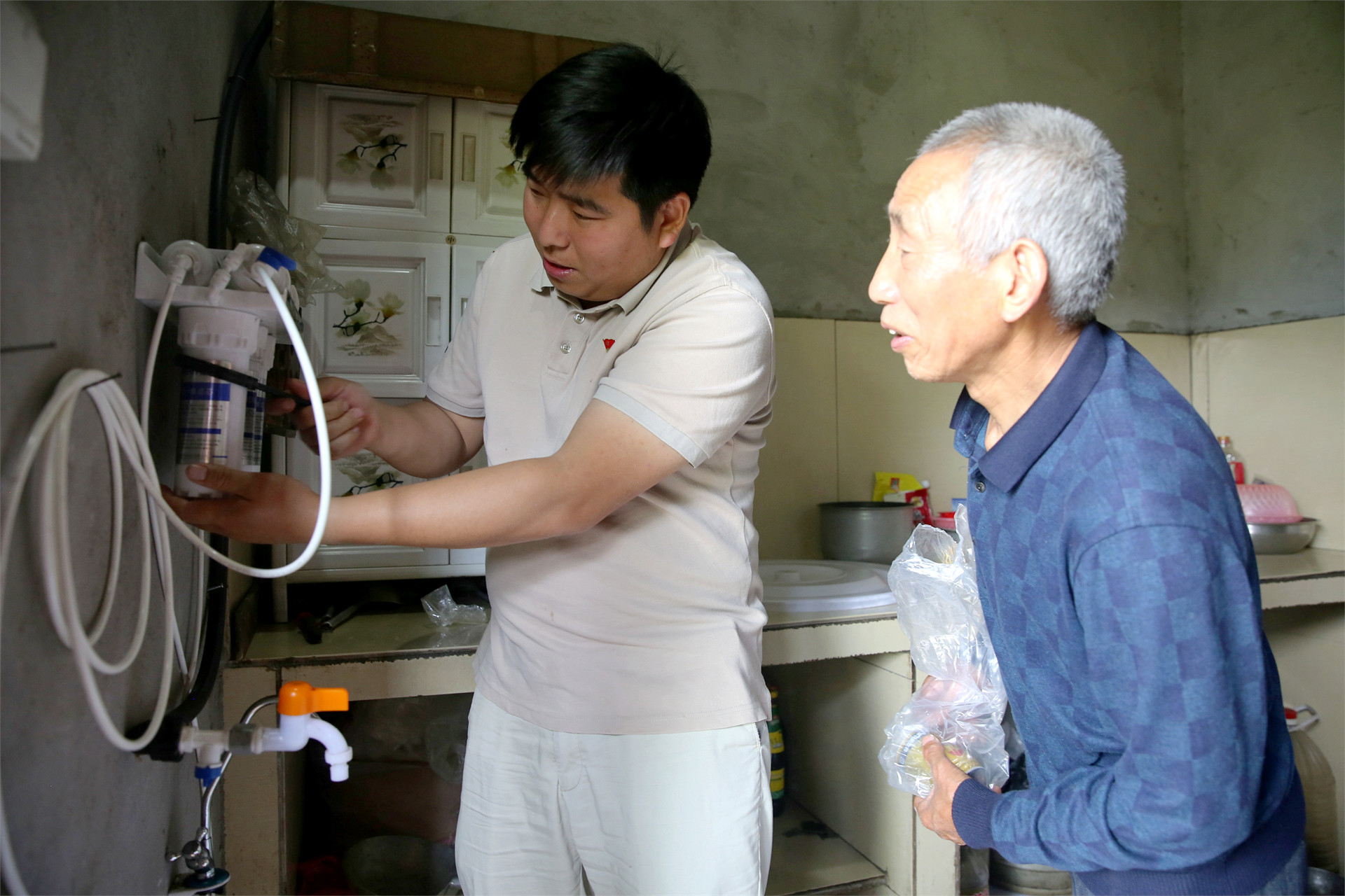 方名兴了解到他们的“饮水难”情况后,用自己的钱第一时间在网上购买了成套的家用净水器,还即时提供“上门安装”服务。看着净化后清洁的水流进水缸里,从此告别山平塘水,老刘他们激动不已,逢人就说“小方书记”是真正和群众贴心、干实事的好干部。