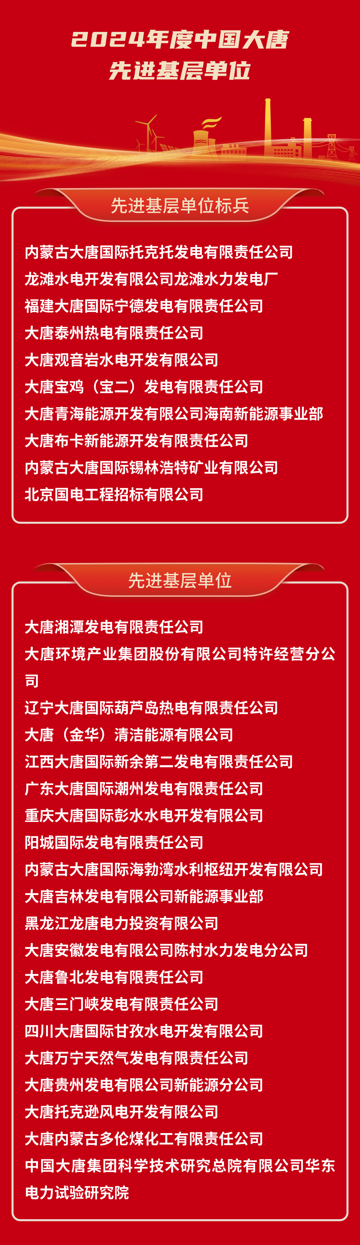 2024年度中国大唐集团有限公司先进单位