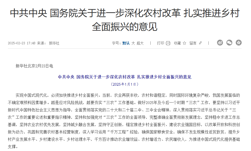 中共中央国务院关于做好2023年全面推进乡村振兴重点工作...