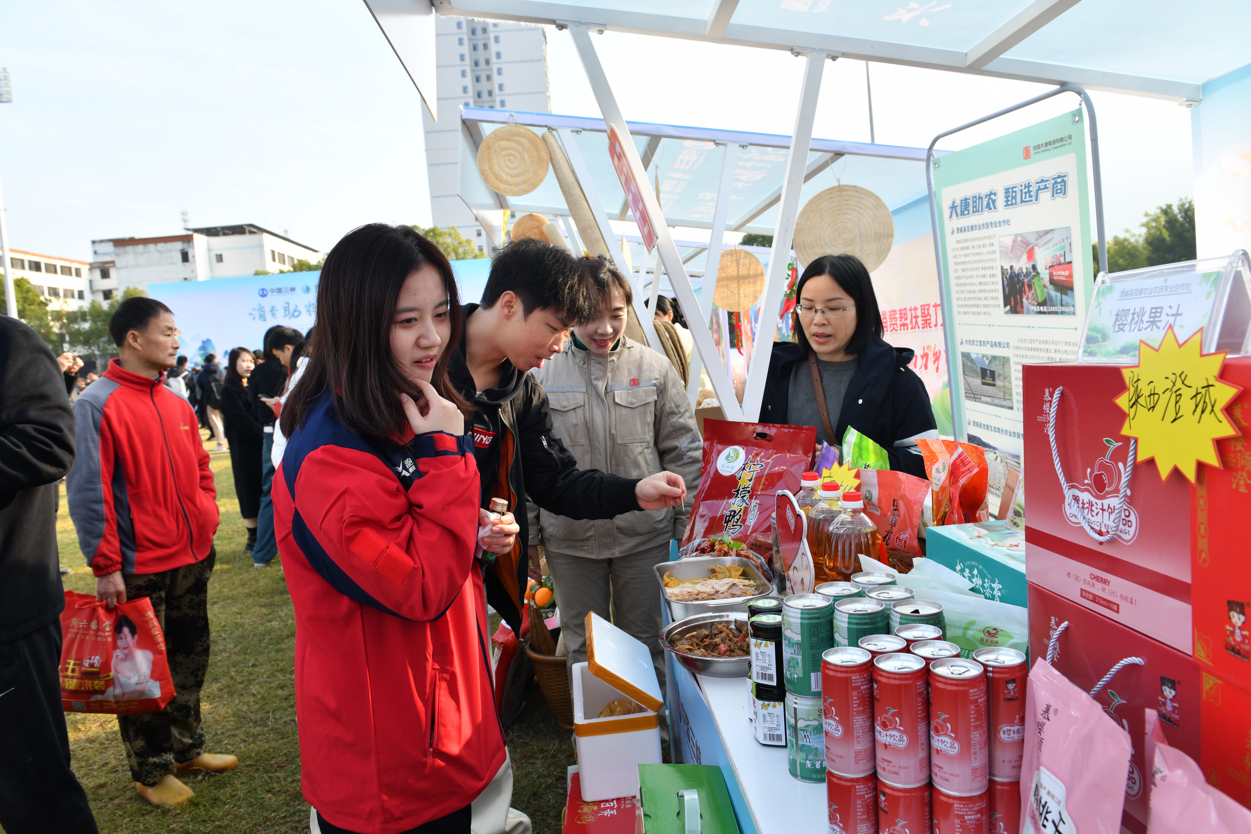 在中国大唐展位,甄选了来自中国大唐定点帮扶的广西大化瑶族自治县、陕西澄城县的20余款特色商品进行现场展销。湖北省巴东县沿渡河电业发展有限公司积极组织当地职工倾力驰援,职工们化身“销售员”,热情地向参观者介绍参展产品的特色。大化七百弄盐焗鸡、柠檬鸭香味扑鼻,澄城秋梨膏、樱桃汁令人垂涎欲滴,吸引了大量消费者驻足品尝购买。